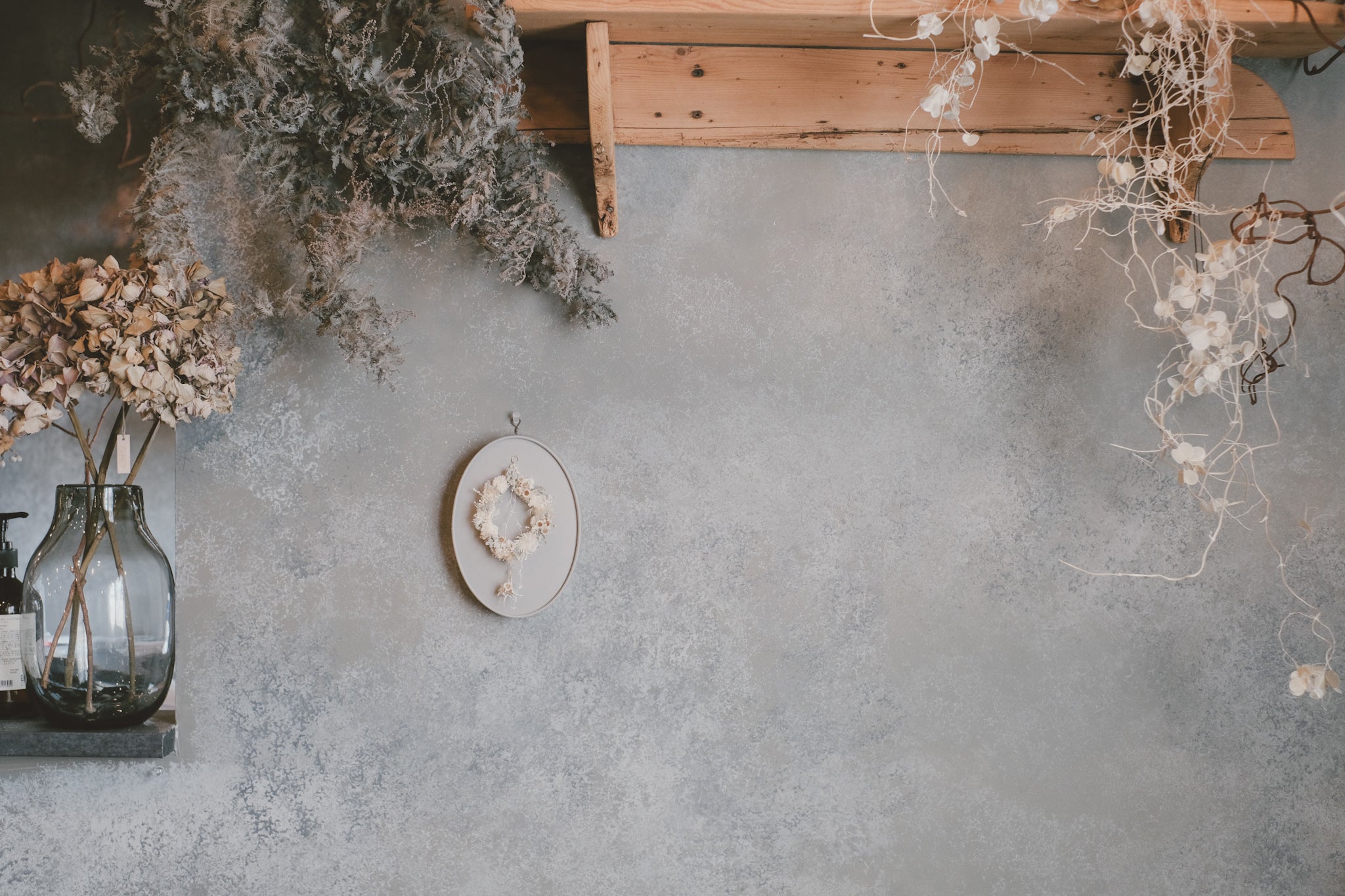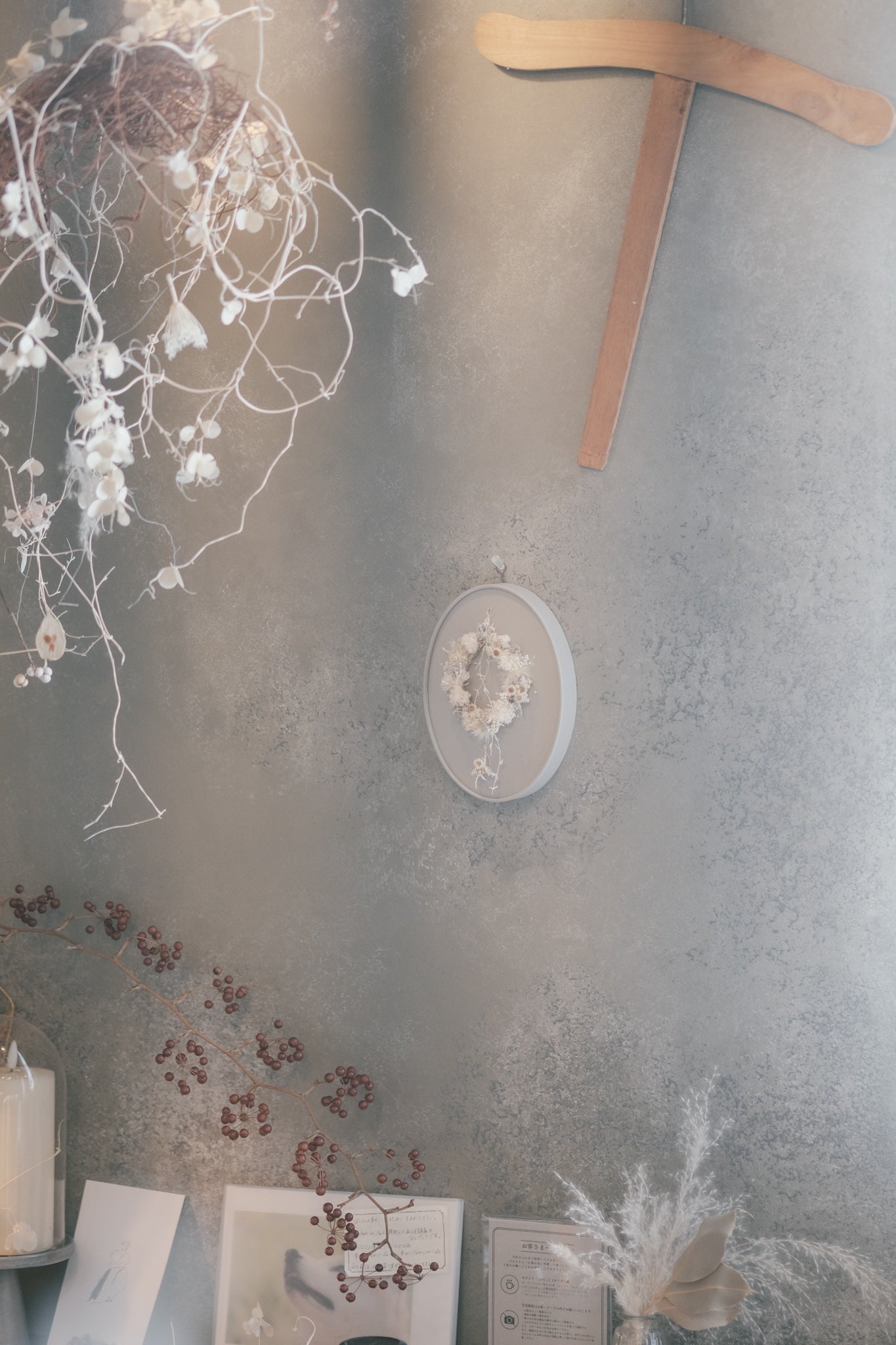 ※ リースは全て自然のものを使用しておりますので、時間の経過もともに色褪せなどが起こりますが、経年劣化の魅力としてお楽しみいただければ幸いです