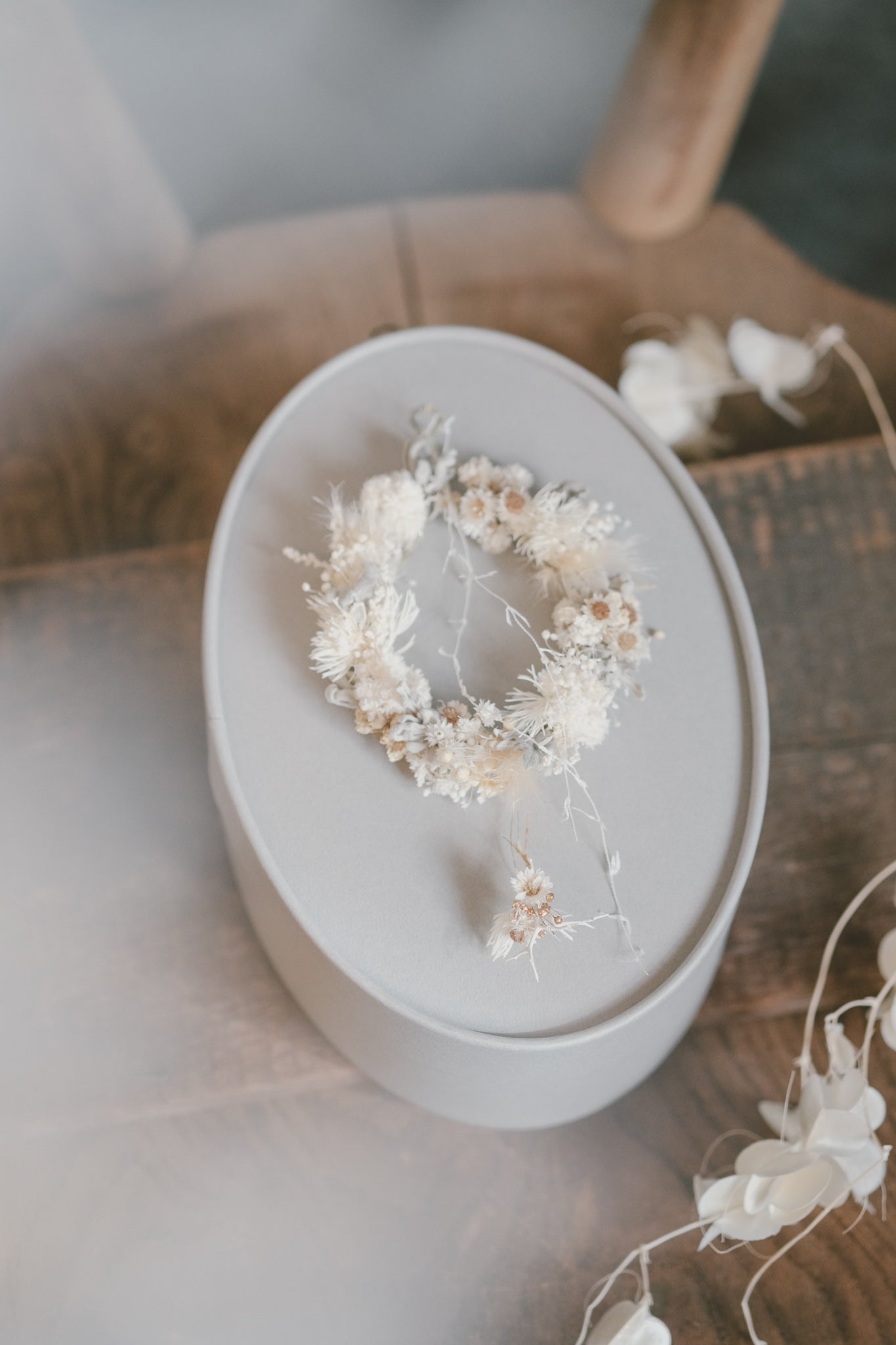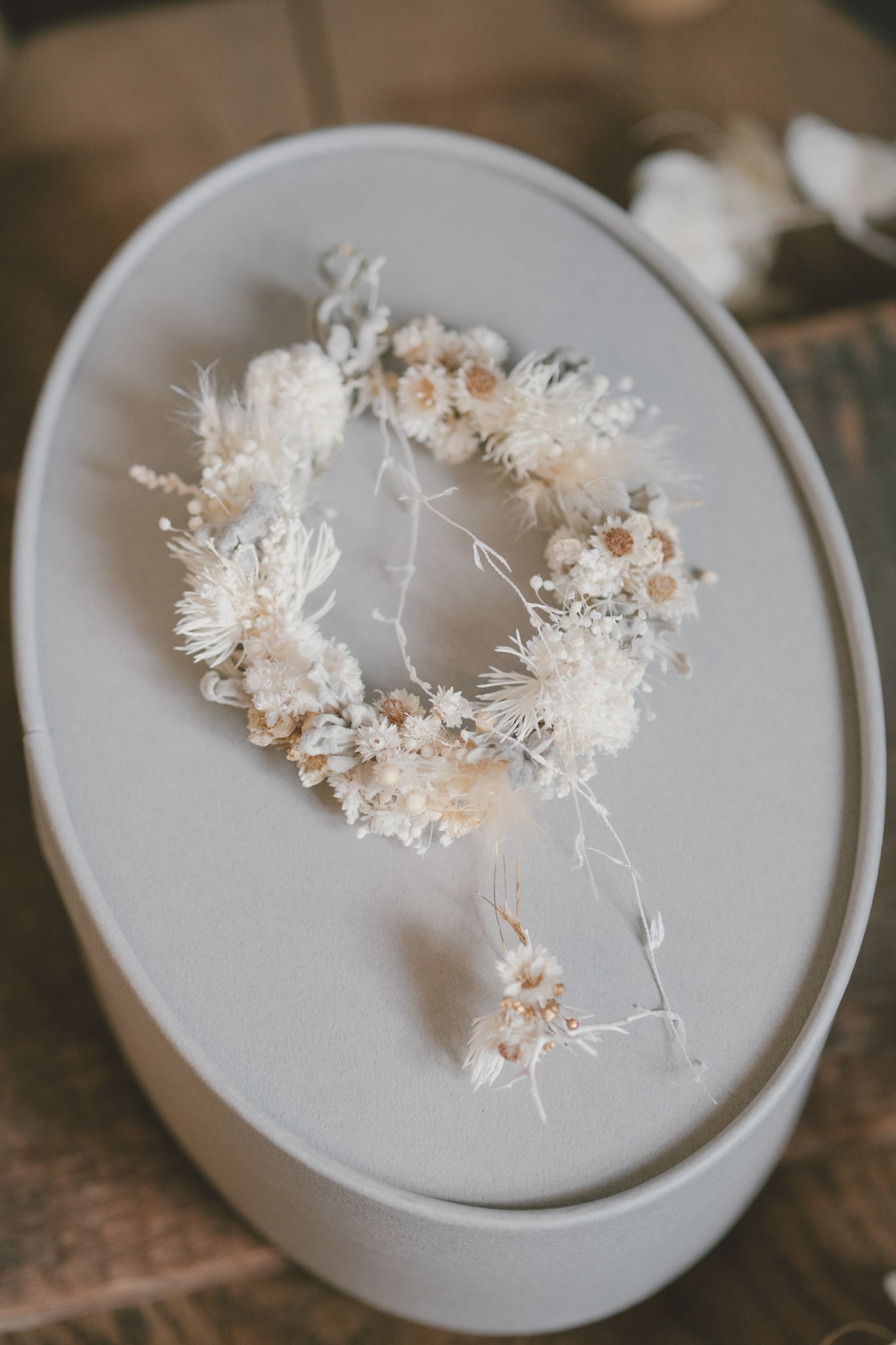 オーバルボックスはシルエットもかわいいので、ボックスに大切なものをいれて飾ってもかわいいです