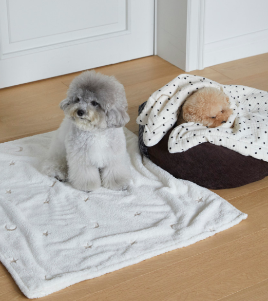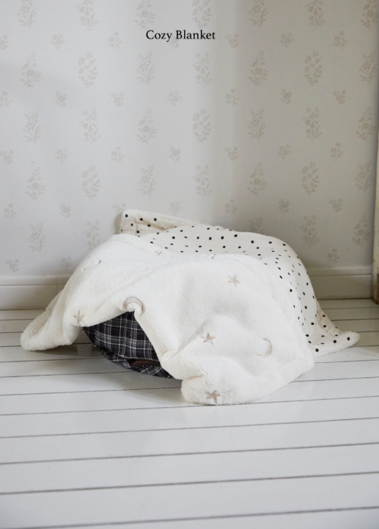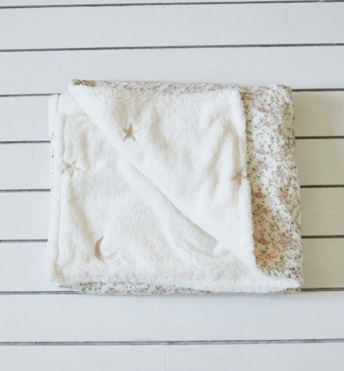 やわらかい極細糸で可愛い星・月刺繡が入っているふわふわのブランケットです