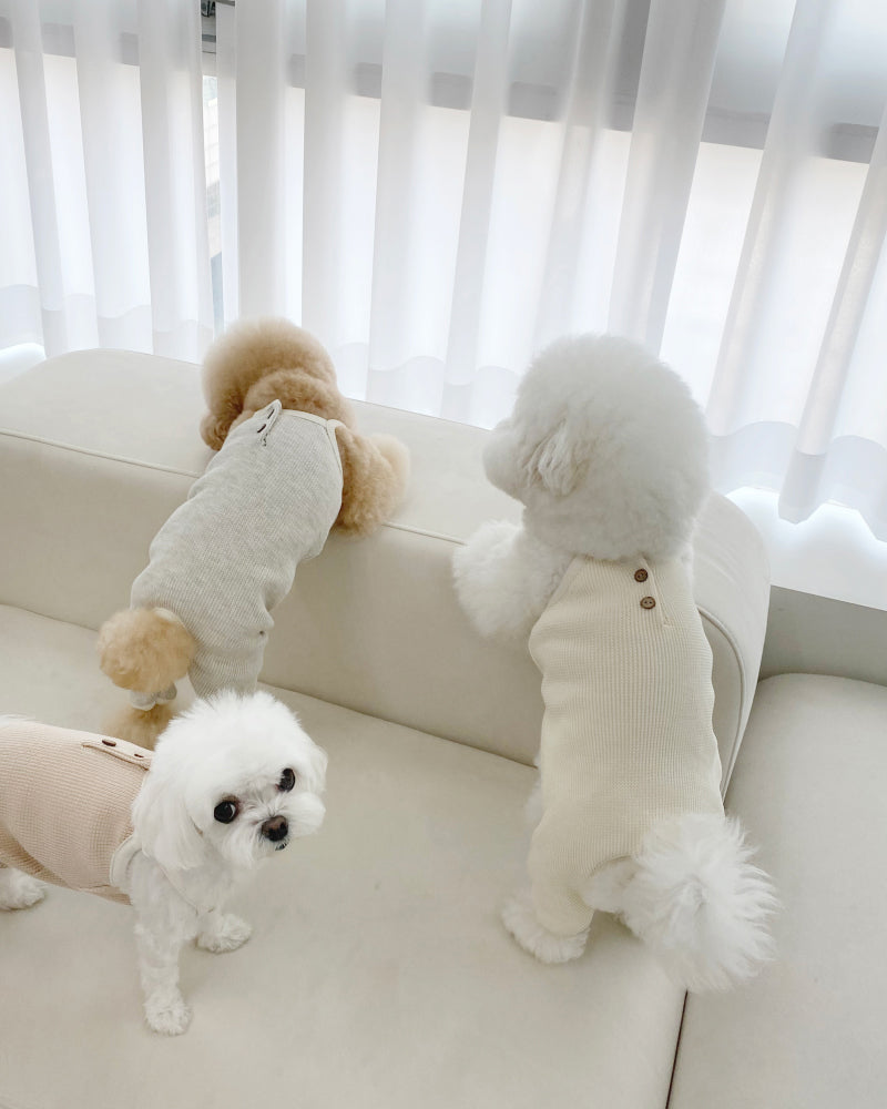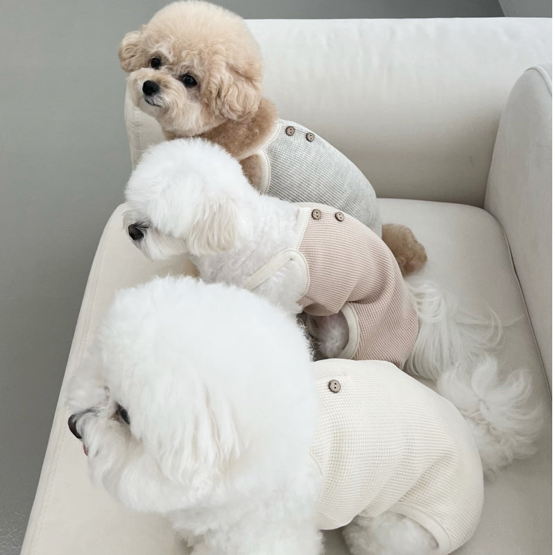 お洋服が苦手なわんちゃんにはボタンをはずして、さっと着せてあげるのがおすすめです◎