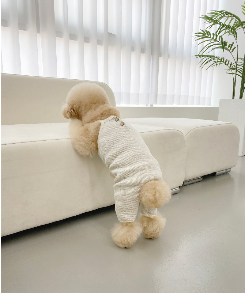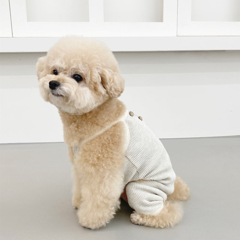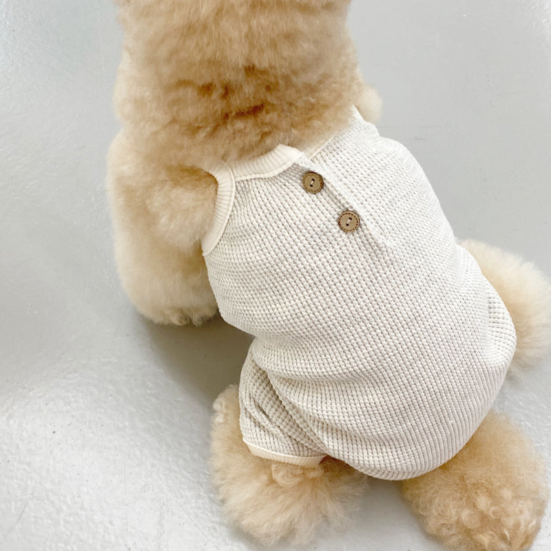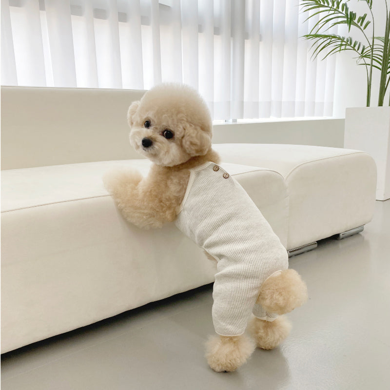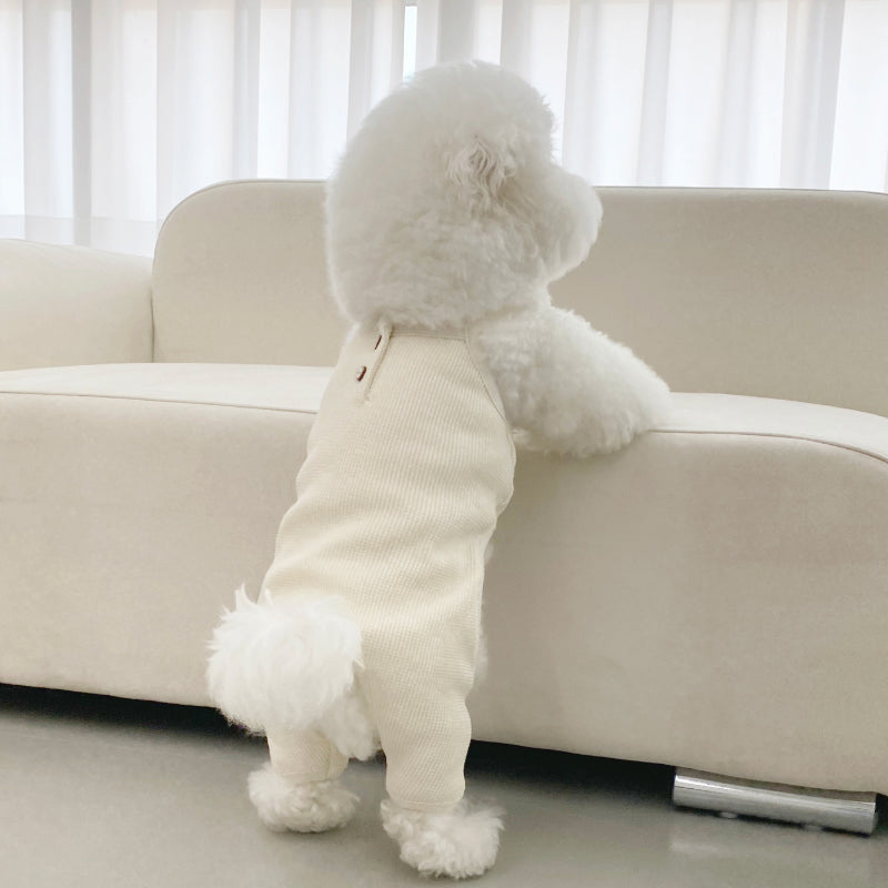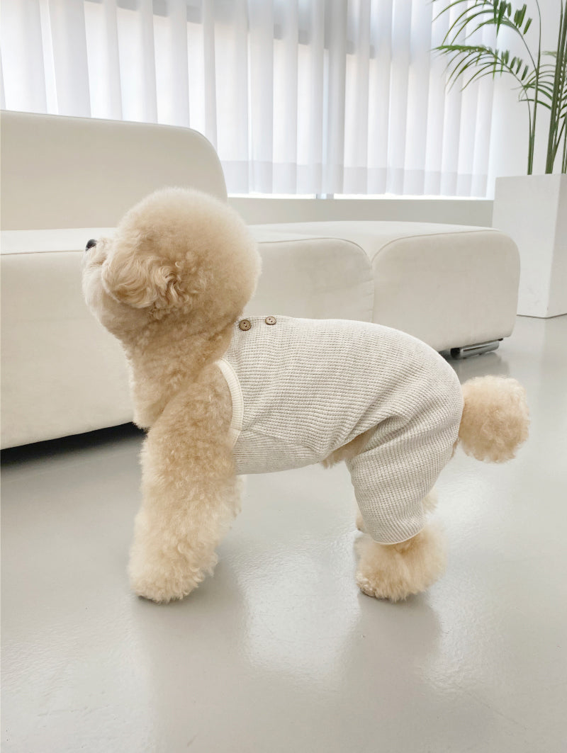 きめ細やかなワッフル織りの生地で作られたオールインワン
