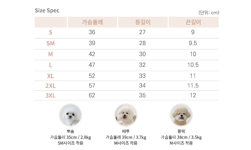 Kongtteokちゃん(トイプードル) 3.5kg / 首周り 26cm / 胸囲 38cm / Mサイズ着用