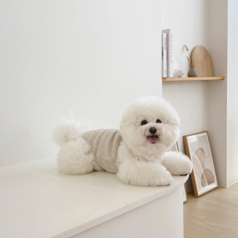 teoruちゃん(ビションフリーゼ) 3.7kg / 胸囲 39cm / Mサイズ着用