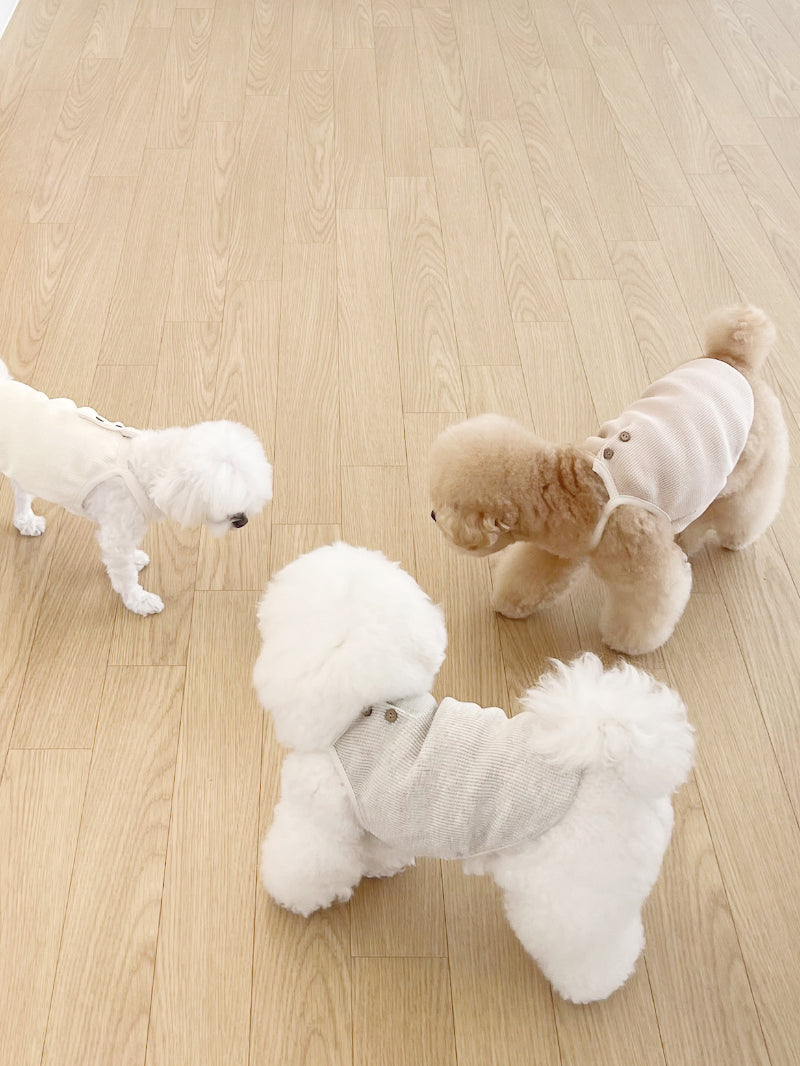 お洋服が苦手なわんちゃんにはボタンをはずして、さっと着せてあげるのがおすすめです◎