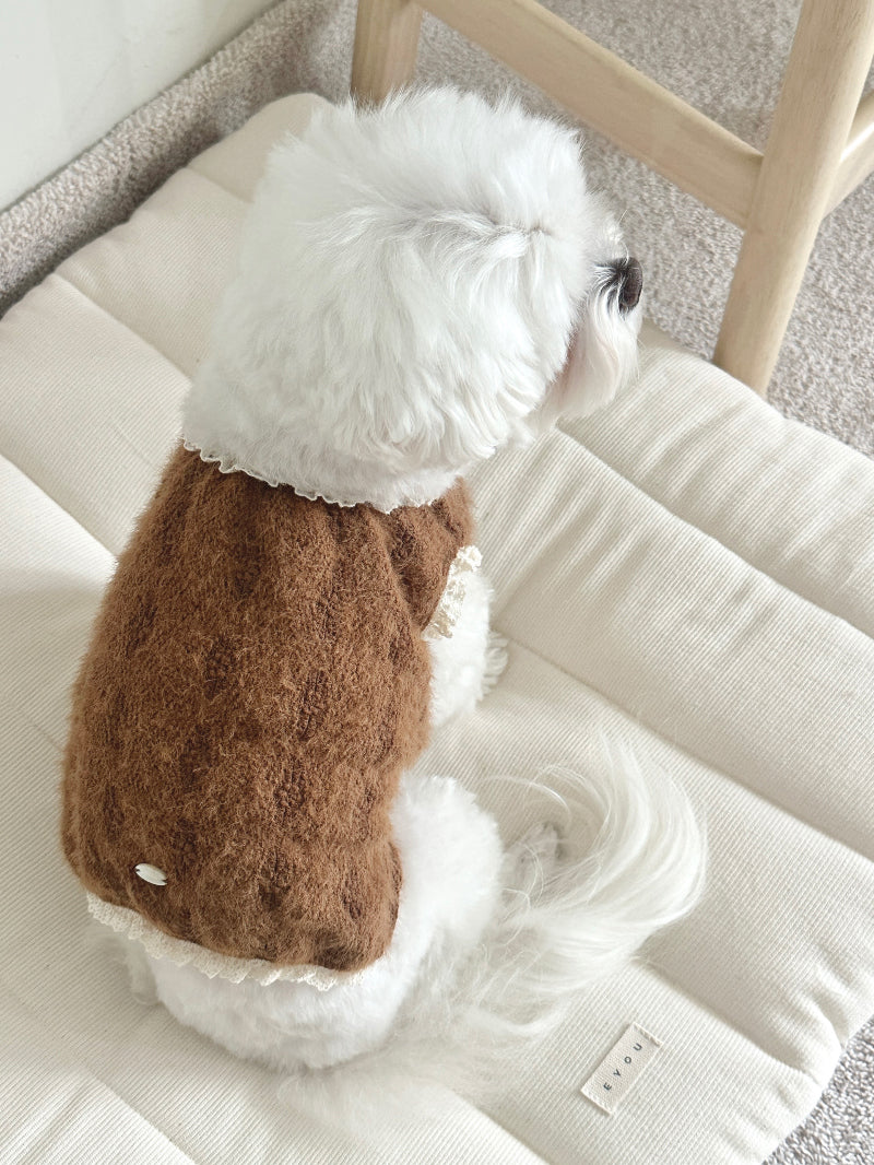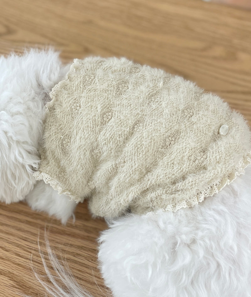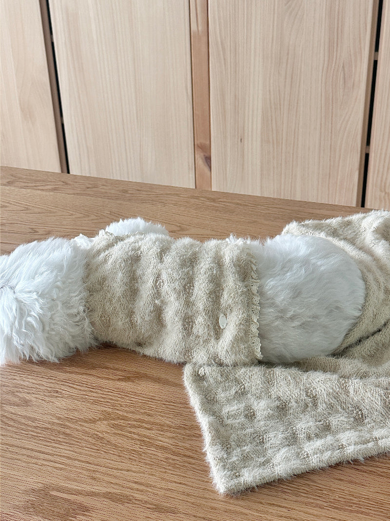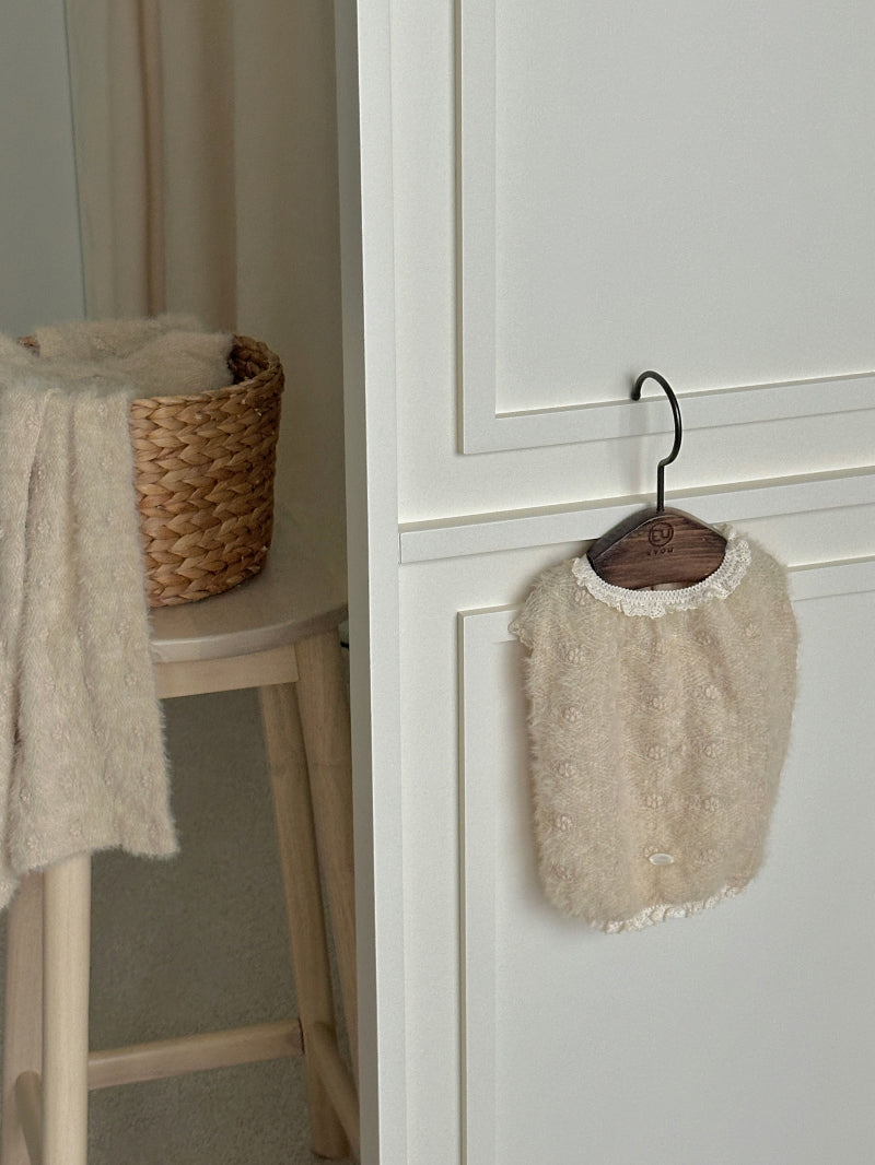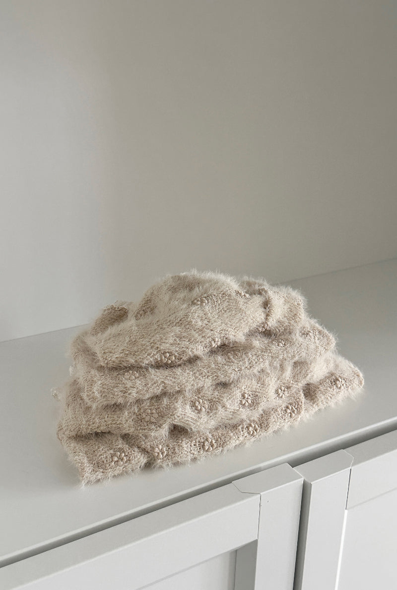 ヘアリーな質感と可愛い花の刺繍が施された生地で作られた