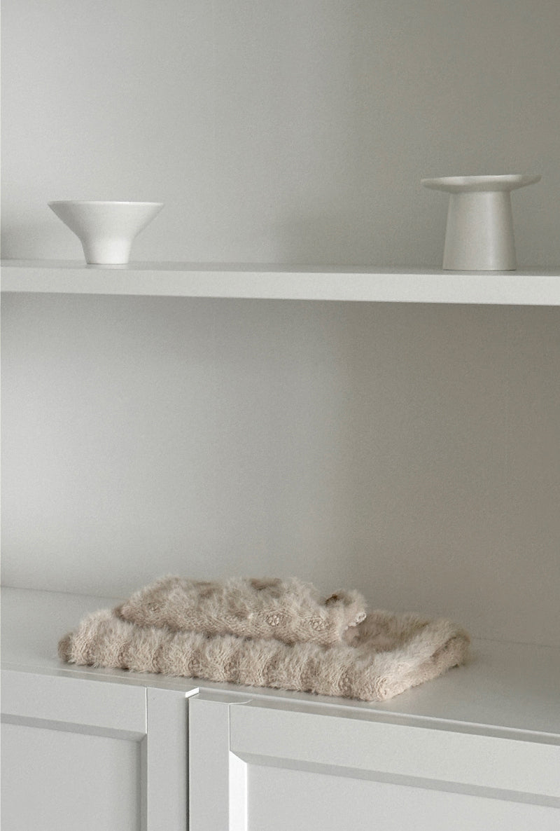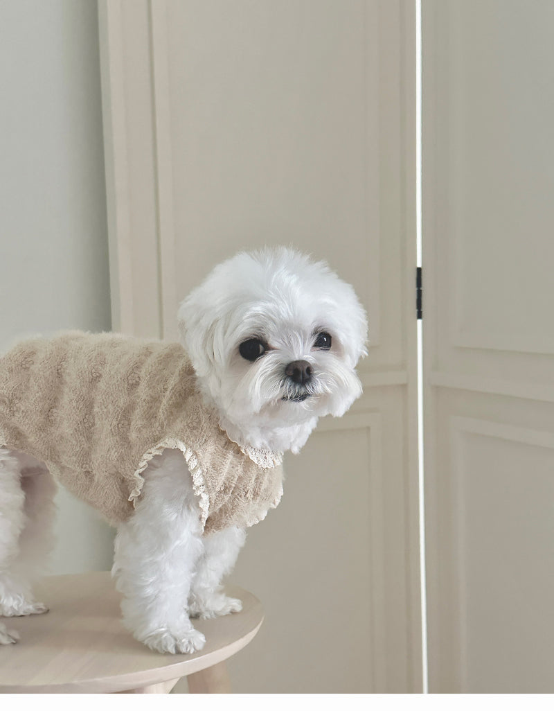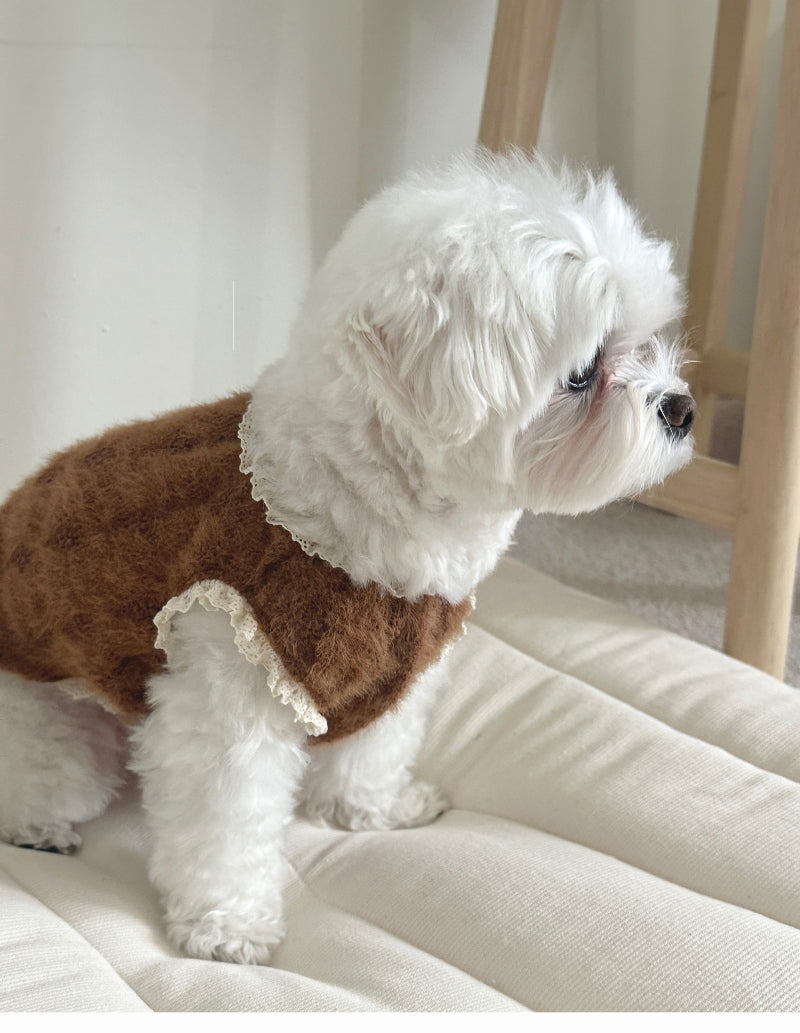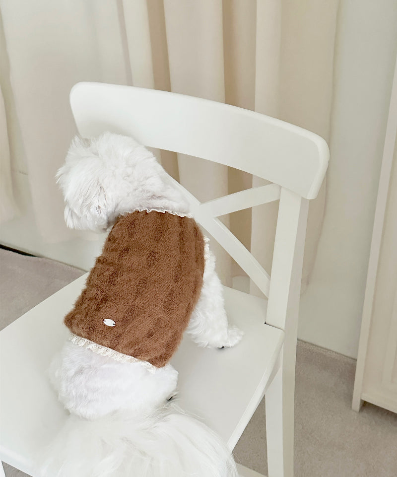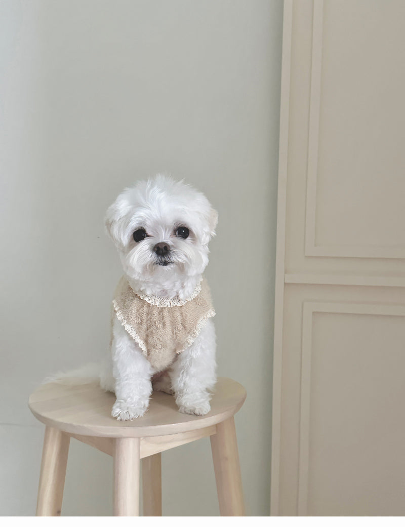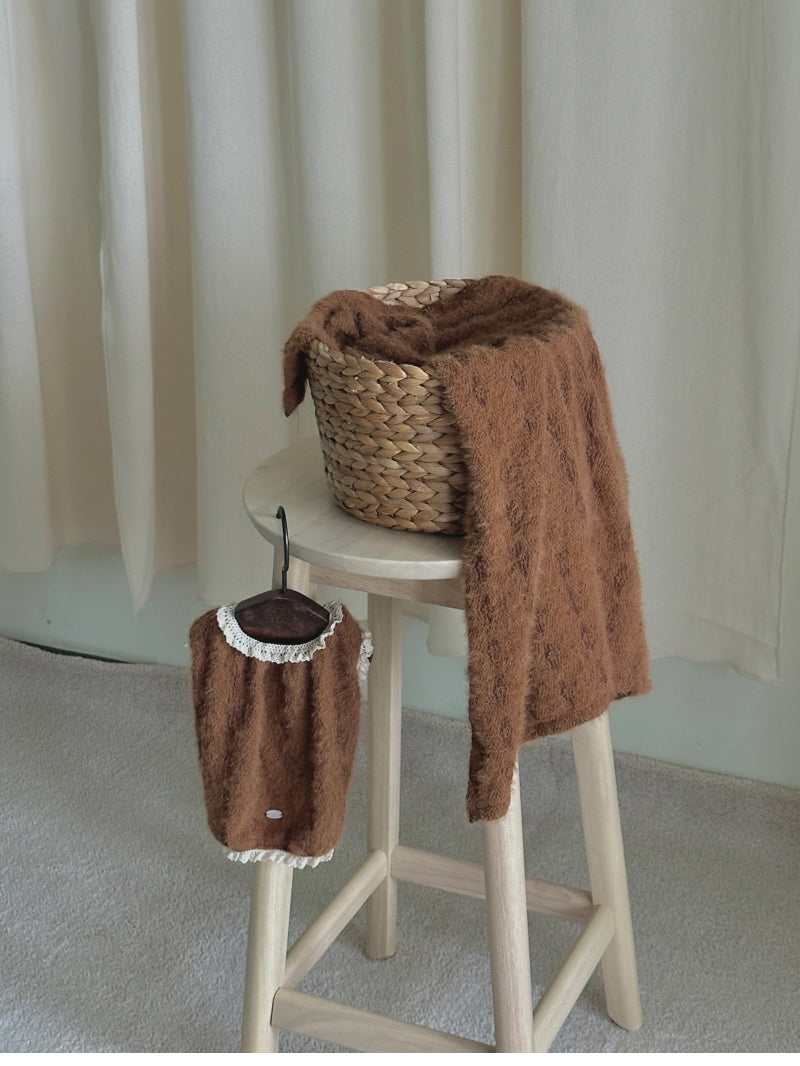 ヘアリーな質感と可愛い花の刺繍が施された生地で作られた