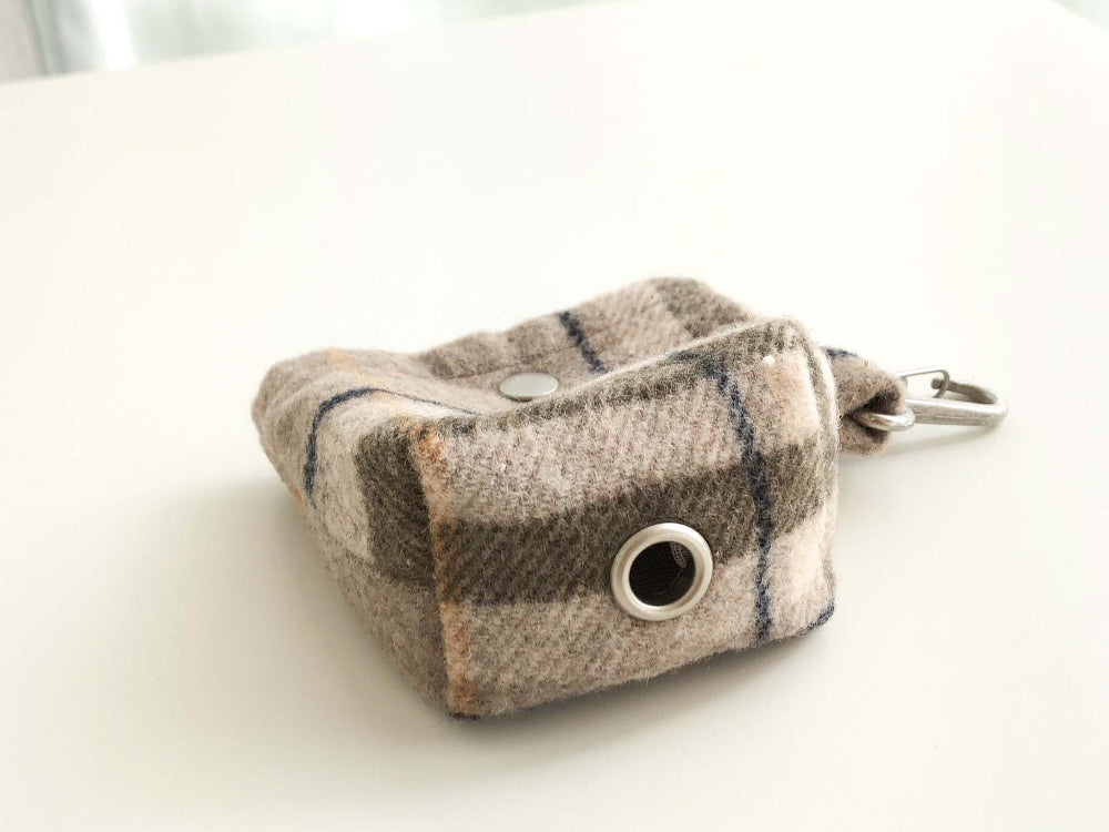 上品なグレーにチェック柄が加わったPoopバッグです。