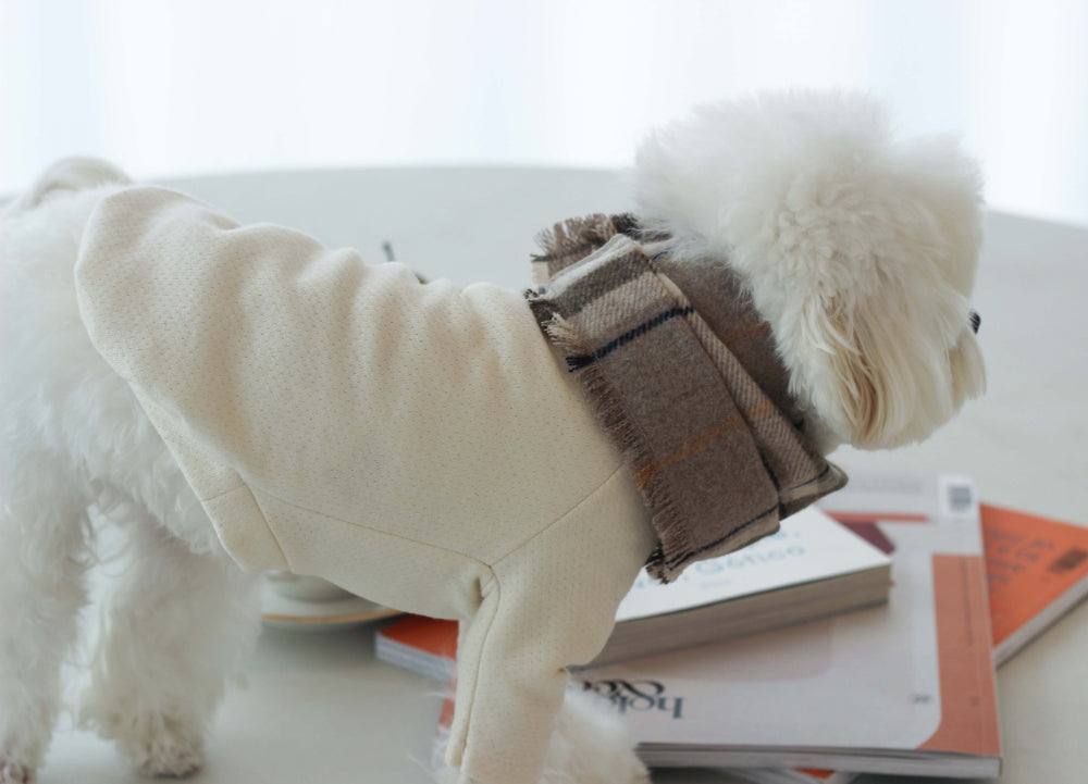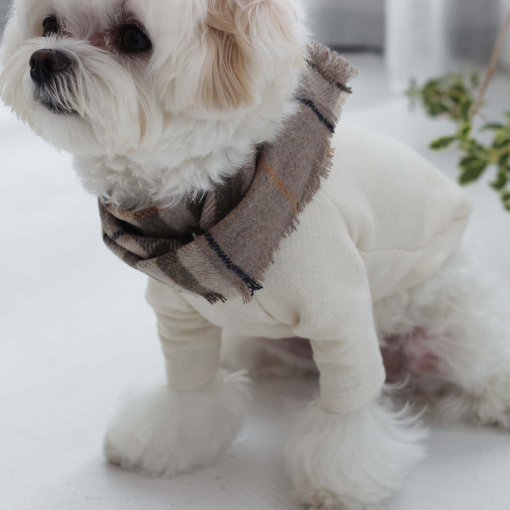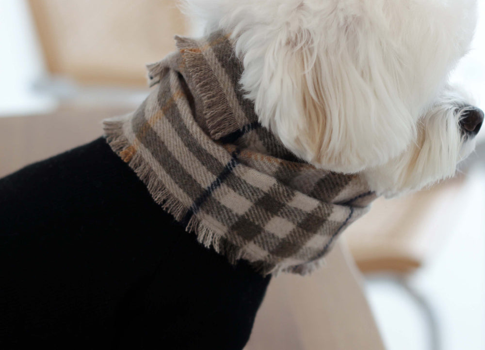 グレーのチェックマフラーは、