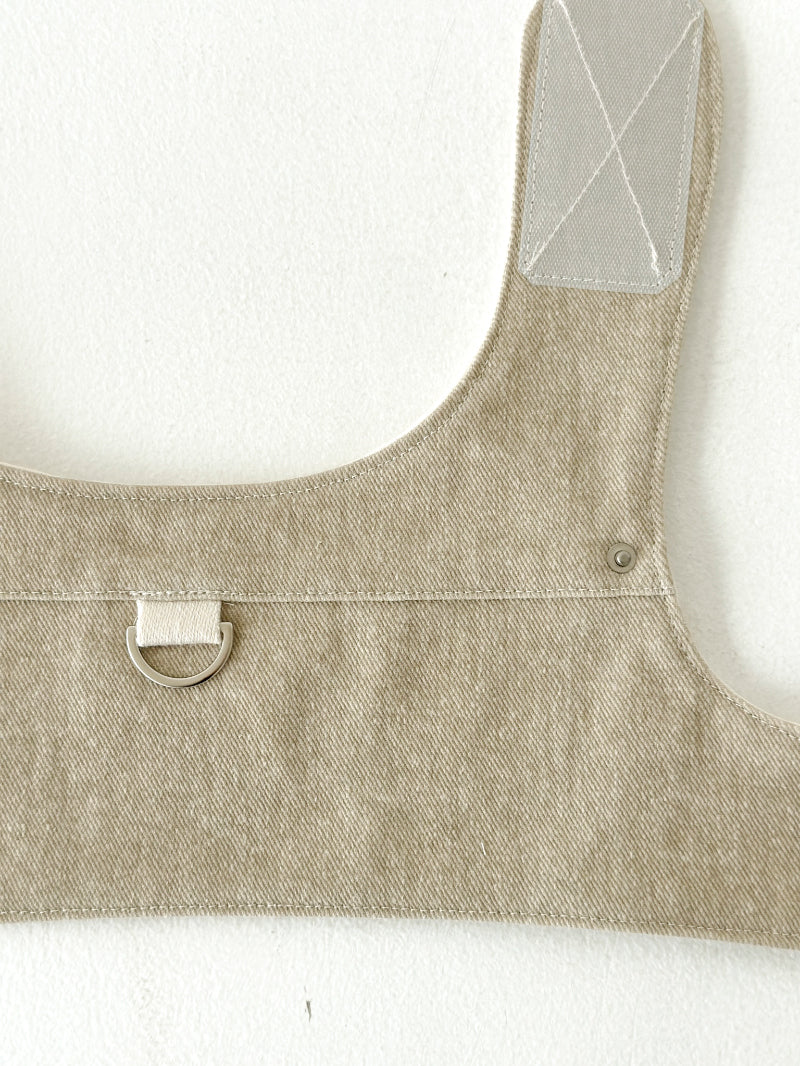 適度な厚みとデニム特有のパリッとした風合いの生地で耐久性に優れ、コットン100%バイオウォッシュ加工により表面は柔らかなタッチ感を提供するハーネスです。