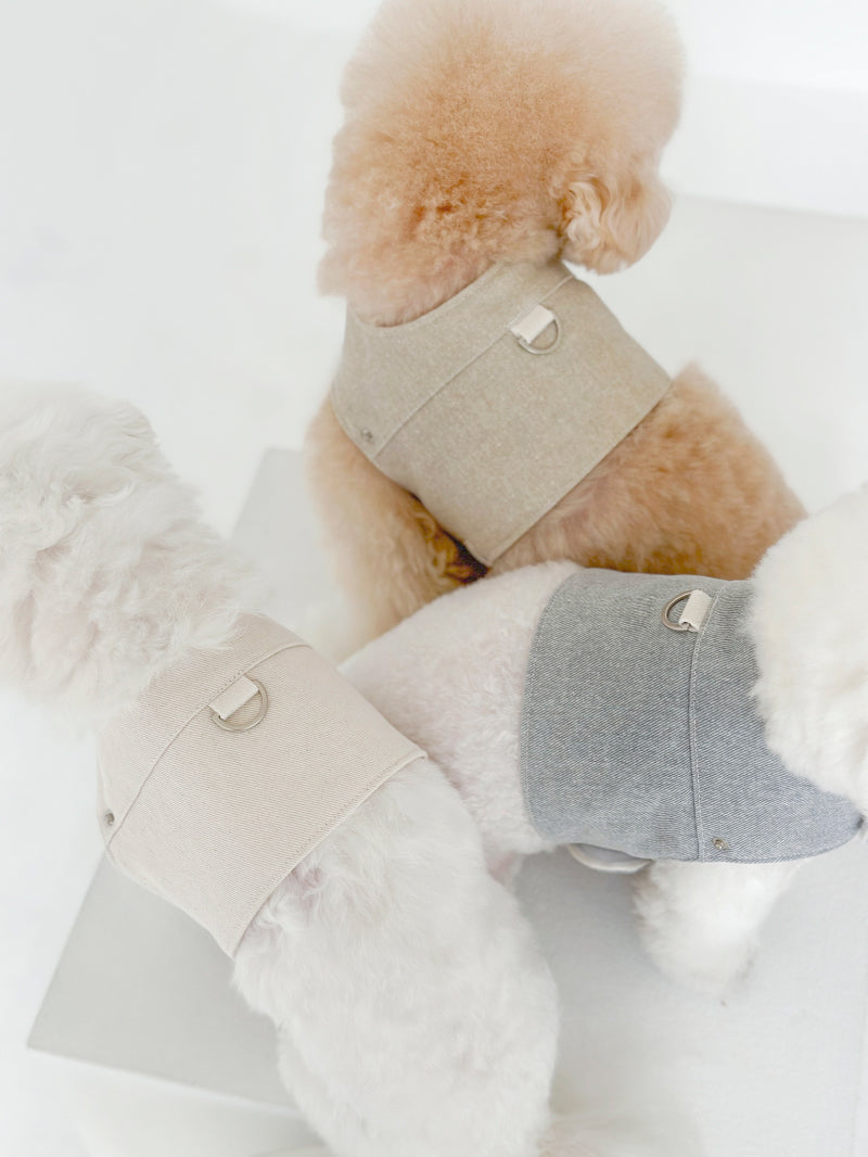 散歩時に必須のハーネス機能はもちろん、ベストタイプで製作されているため、インナーウェアとのコーディネートにも最適◎