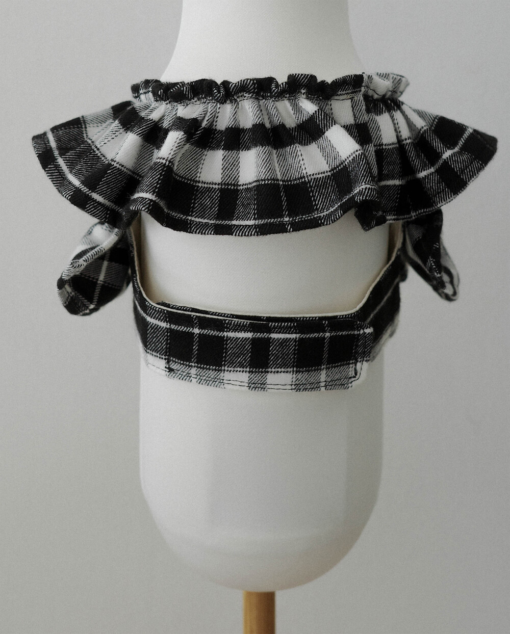 OHDIBSならではの洗練されたパターンと、ケープをまとったような2段フリルディテールが魅力的なアイテムです。