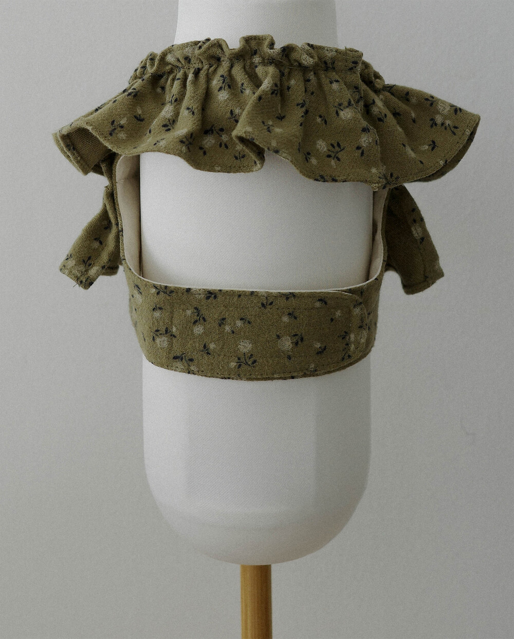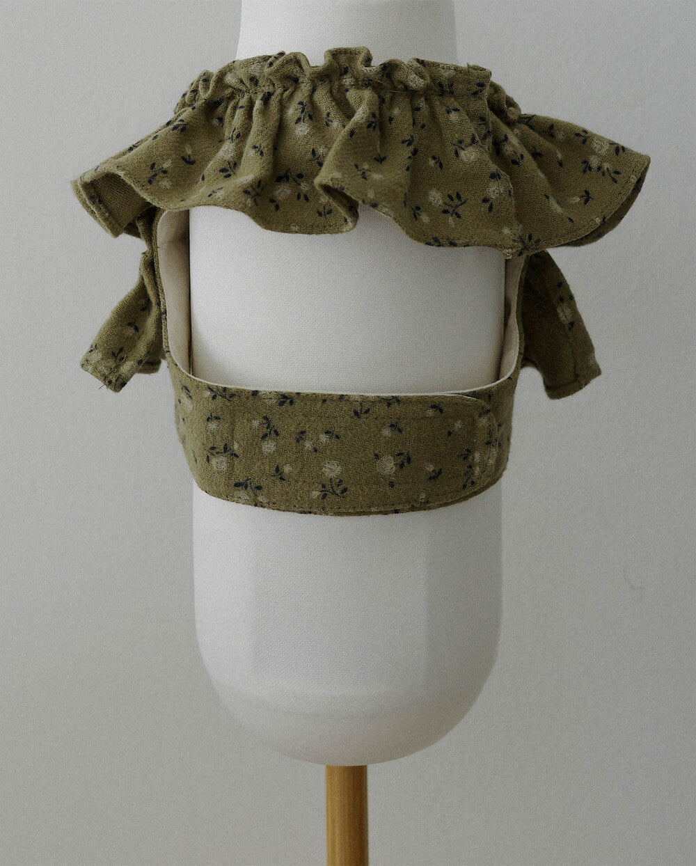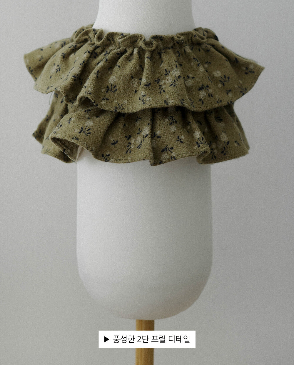 OHDIBSならではの洗練されたパターンと、ケープをまとったような2段フリルディテールが魅力的なアイテムです。