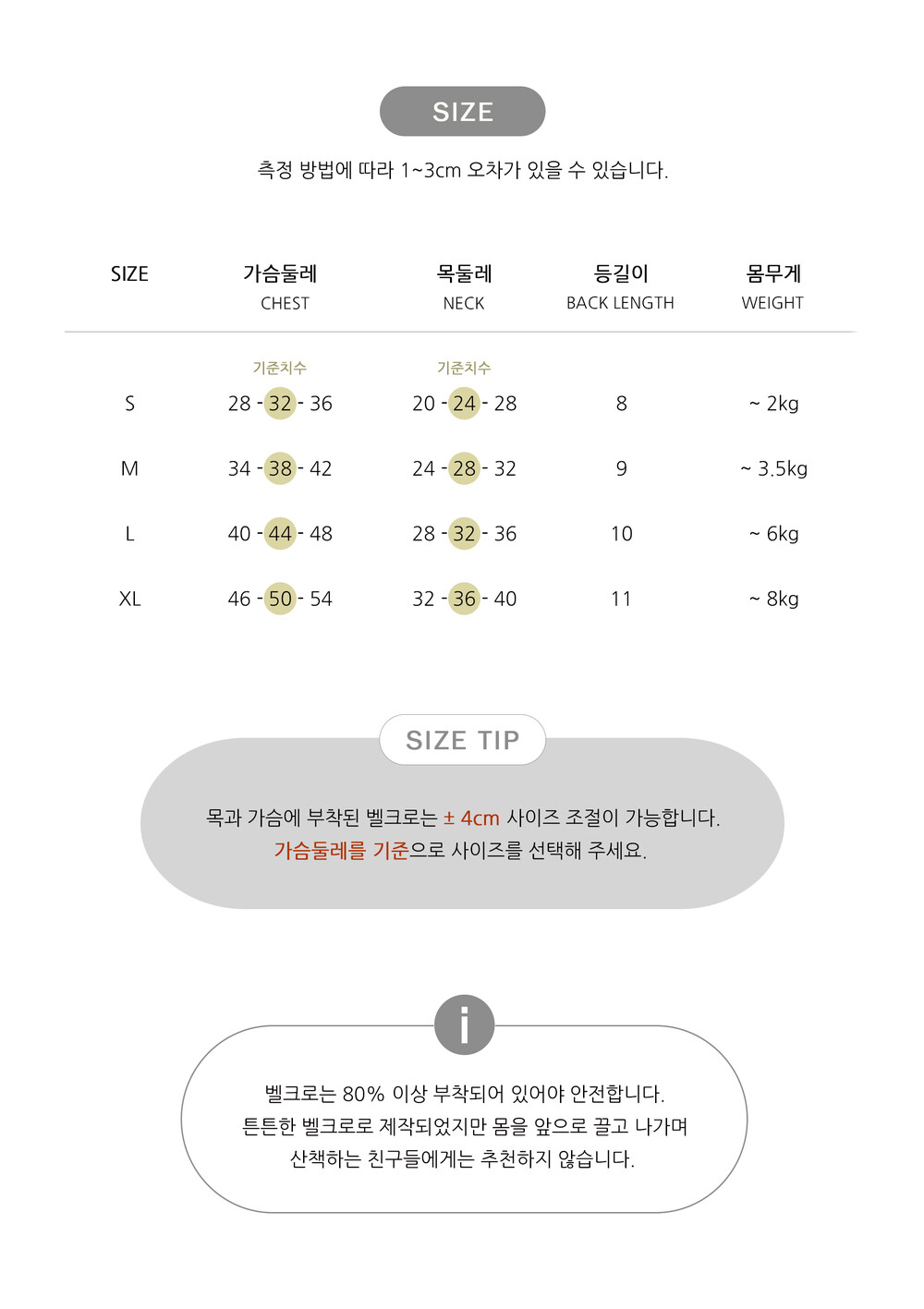 | XL | 46~50~54 | 32~36~40 | 11 | ~8kg |
