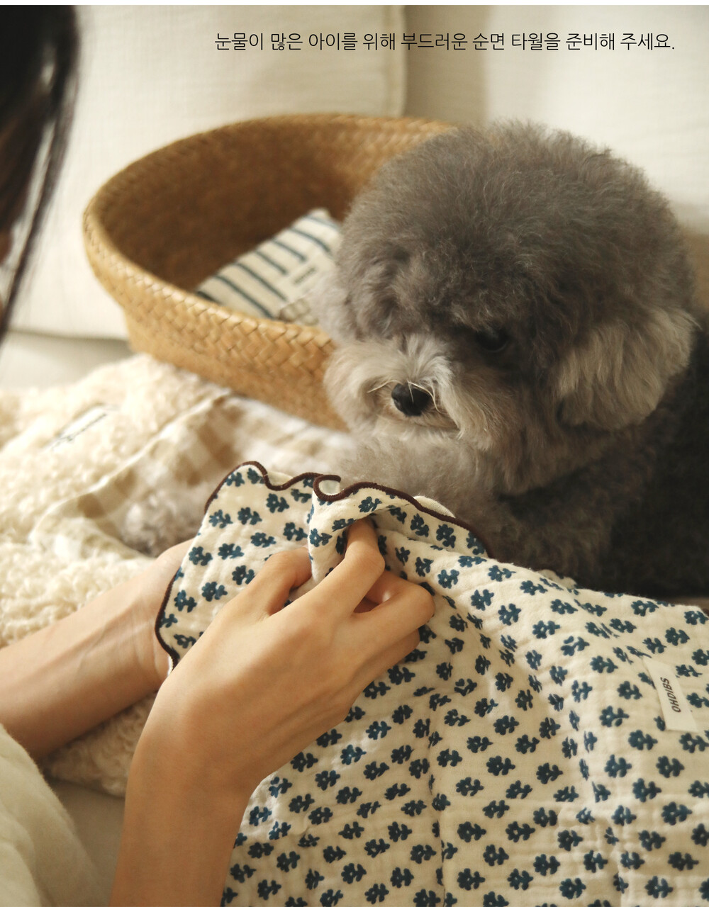涙の多いわんちゃんのために、柔らかな純綿タオルをご用意◎