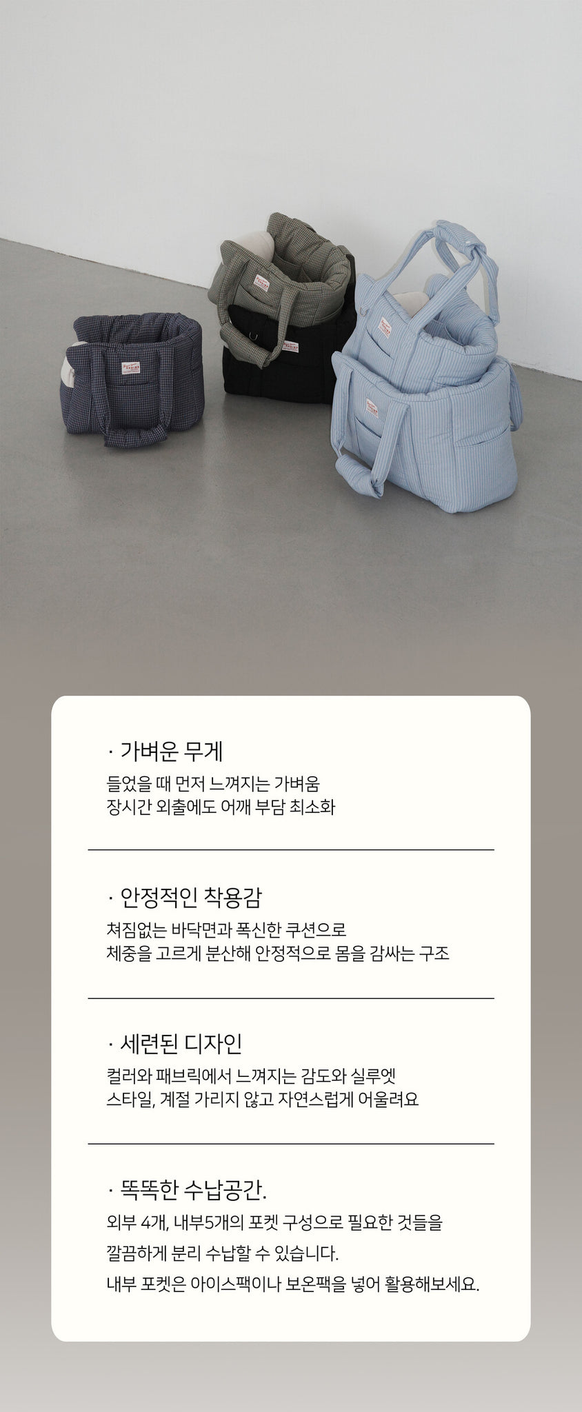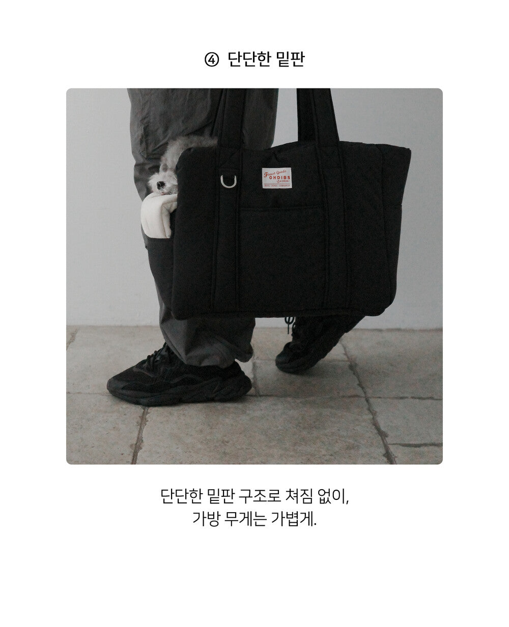 軽く快適で実用的な構造で、飼い主とわんちゃんの両方が負担なく外出できる移動バッグです。