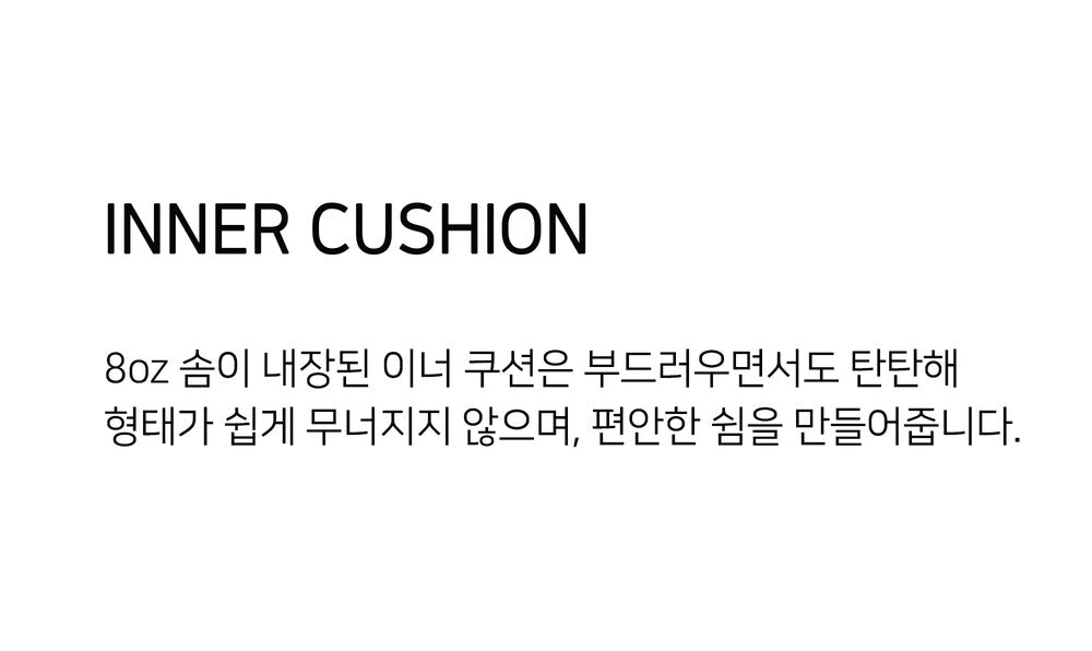 8ozの中綿が組み込まれたインナークッションは、柔らかいながらもしっかりとしていて型崩れしにくい仕様