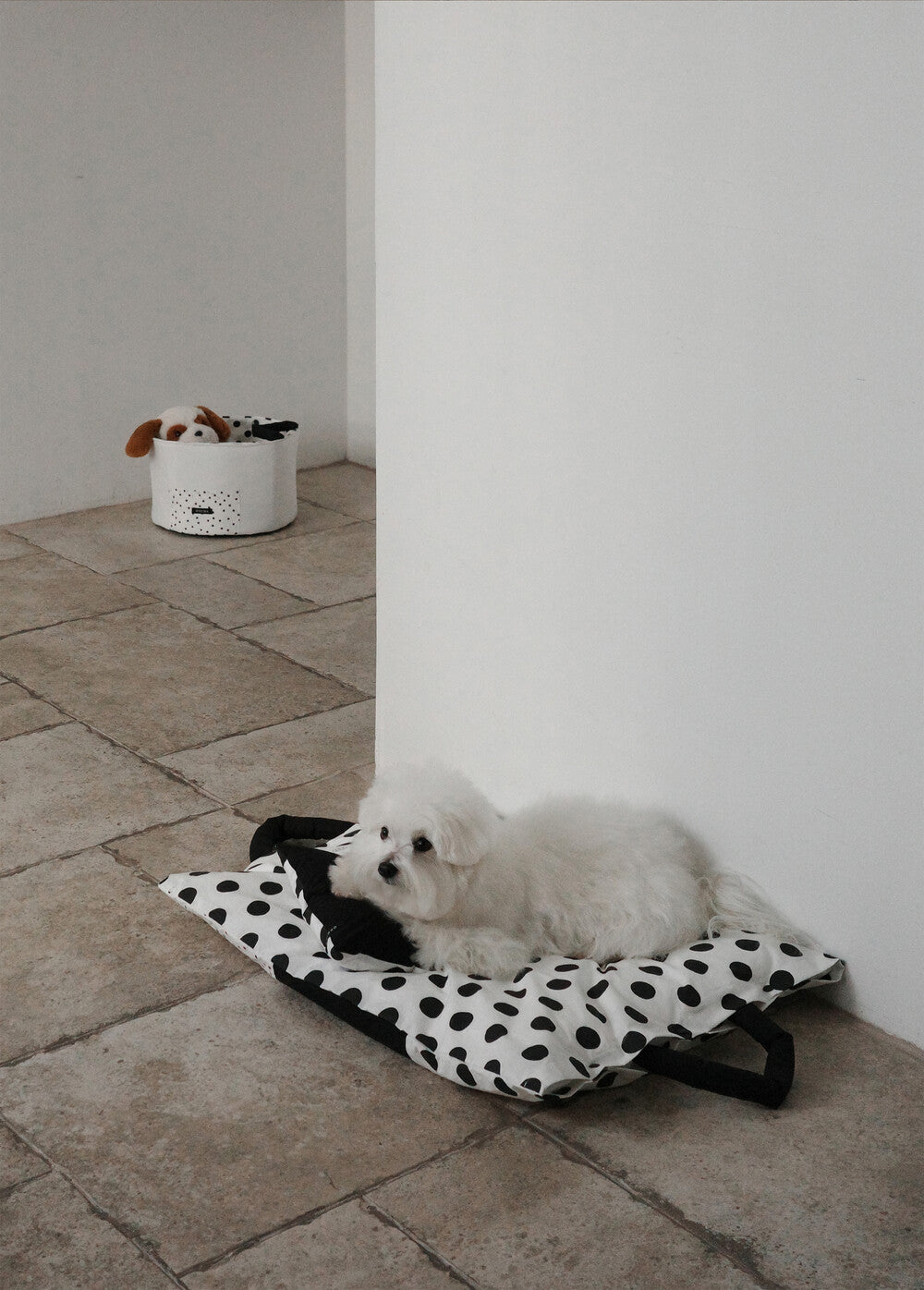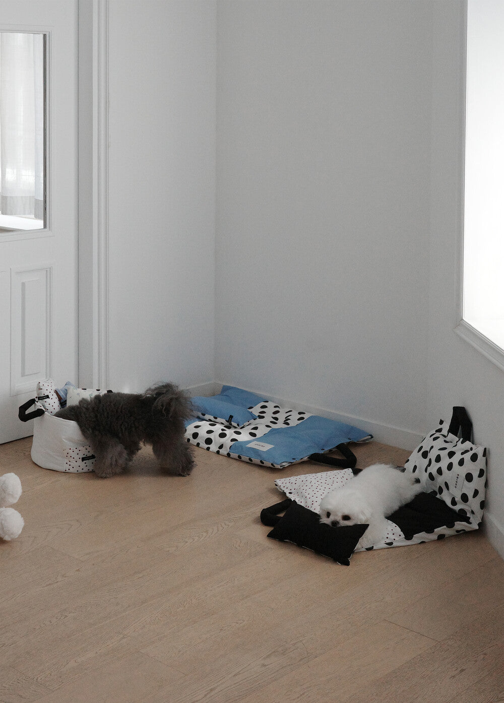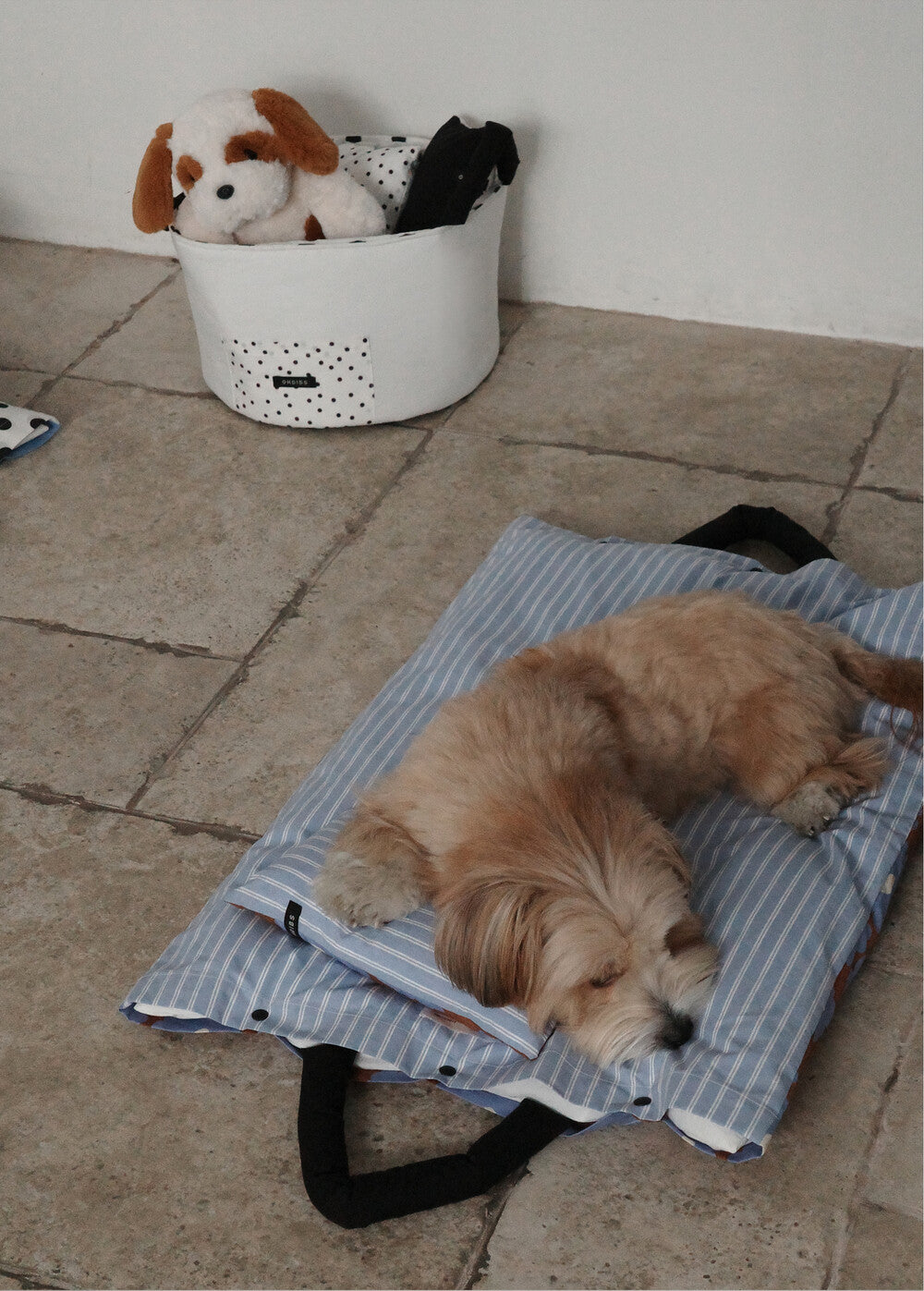 トッパーの上はもちろん、キャリーバッグやドライブボックスの中でも大活躍! コンパクトで置き場所を選ばないから、どこでも愛犬の特等席になります。