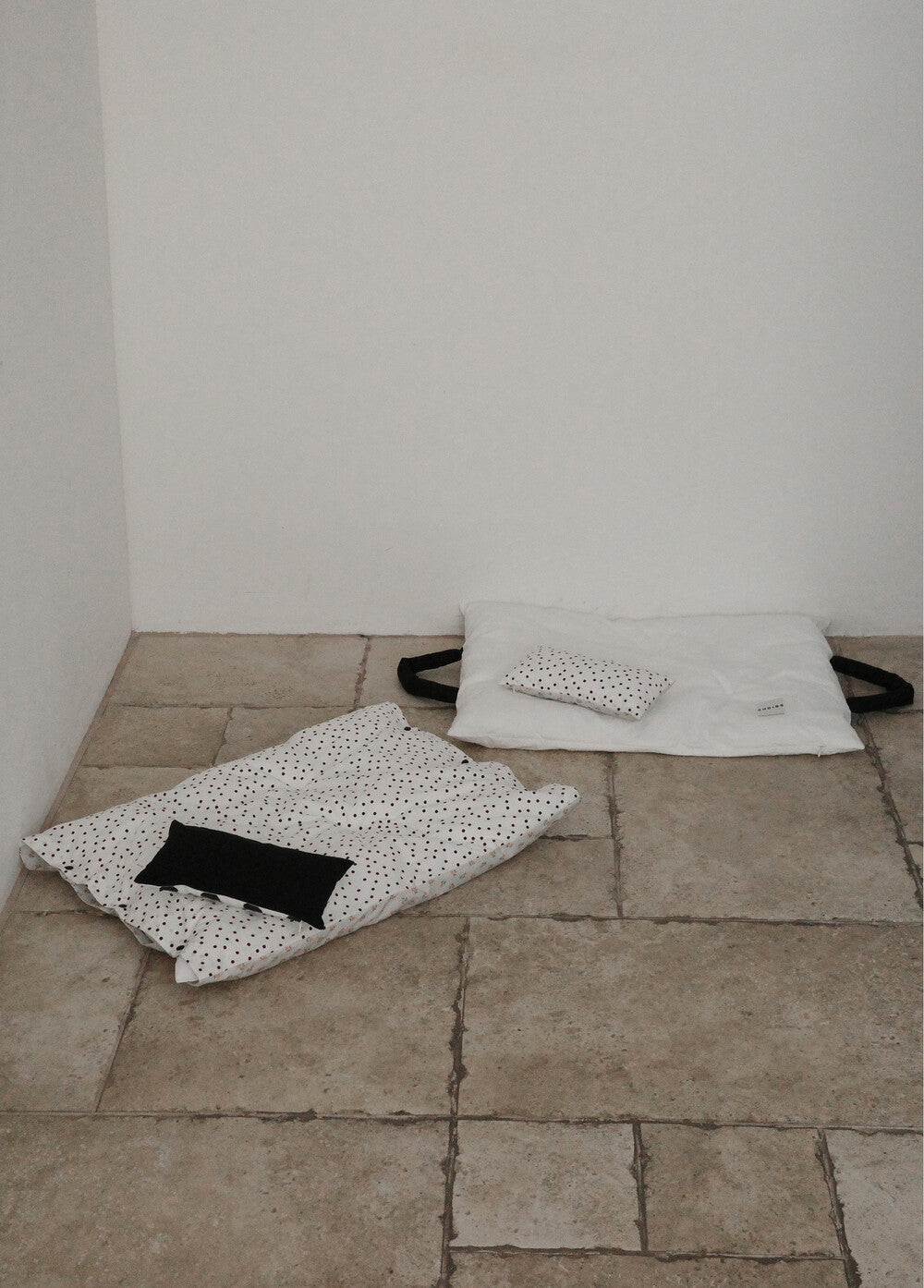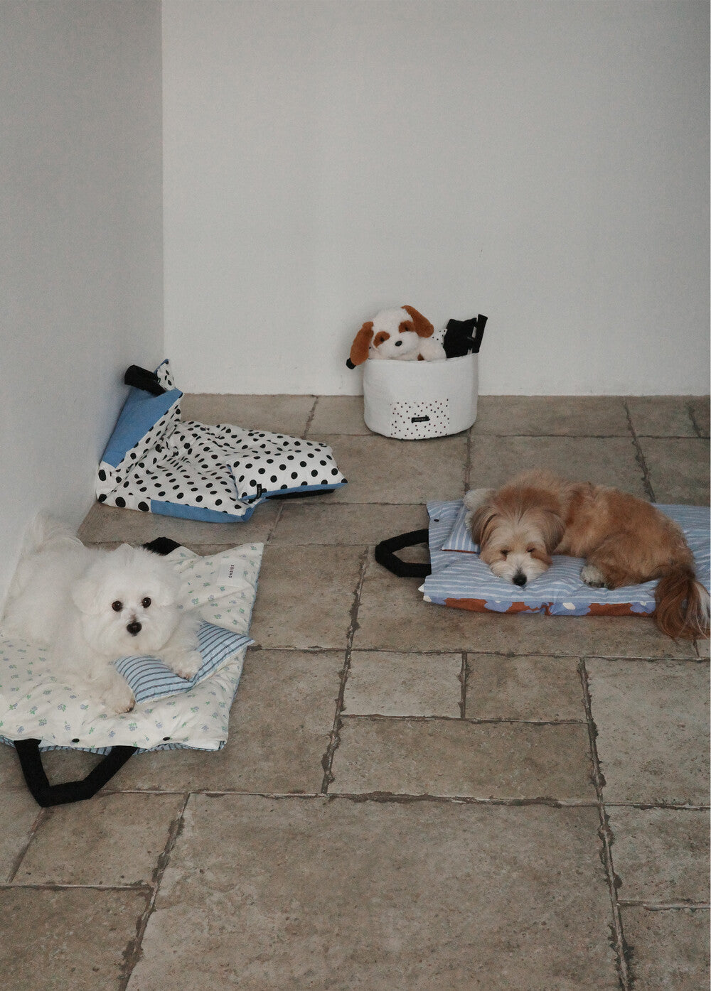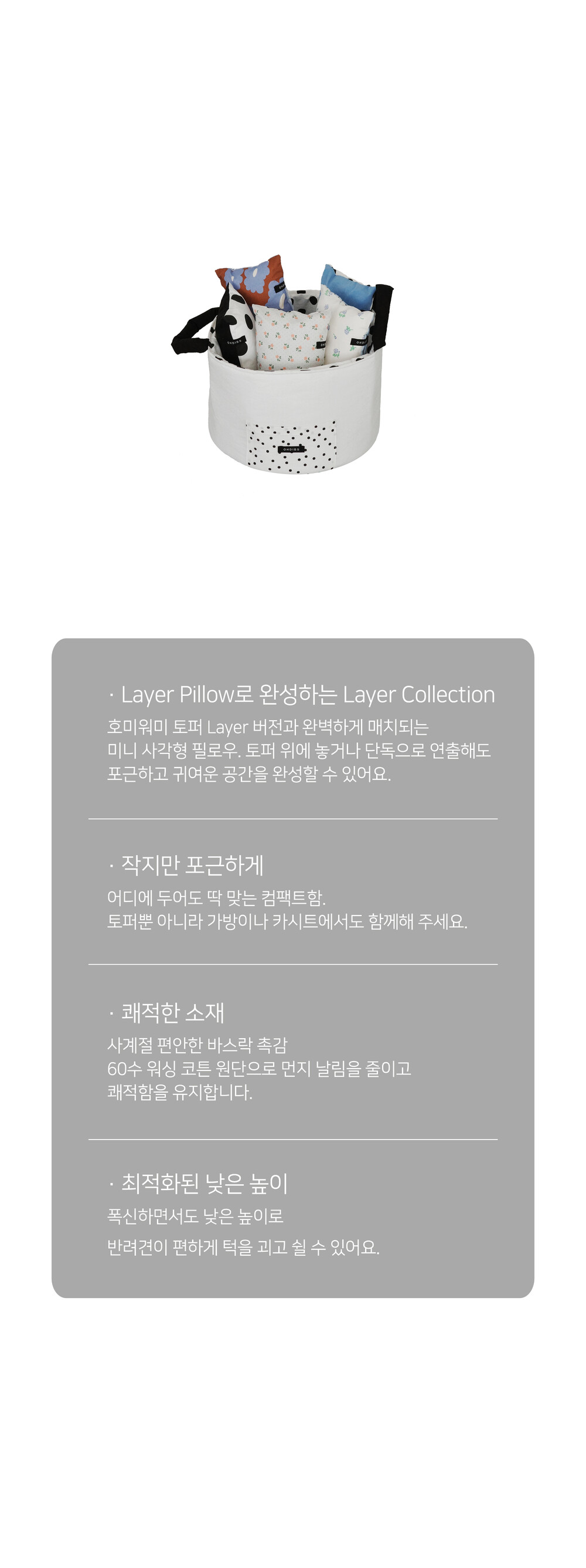 トッパーの上はもちろん、キャリーバッグやドライブボックスの中でも大活躍! コンパクトで置き場所を選ばないから、どこでも愛犬の特等席になります。