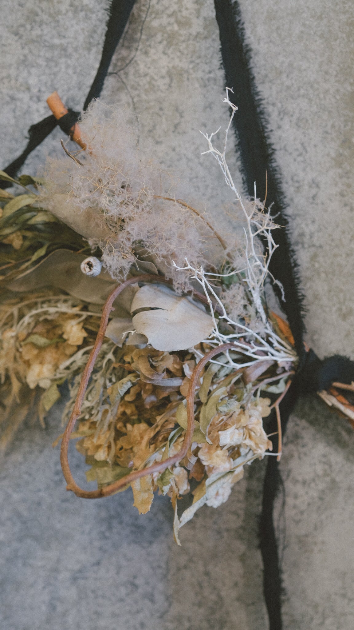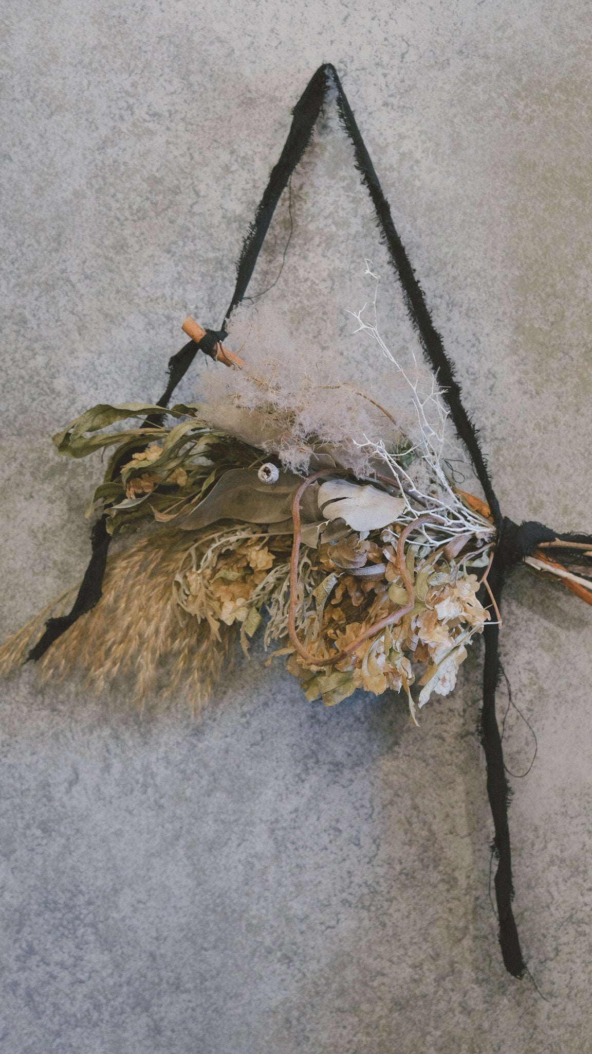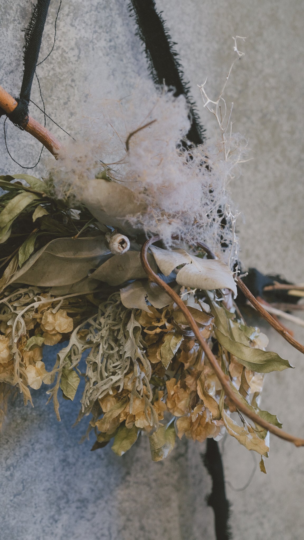 使用しているドライフラワーは、もとは自然なお花のため花びらが欠けていたり、くしゅっとなっている箇所、色の濃淡などがありますが、ひとつひとつの個性として受け止めていただければ幸いです