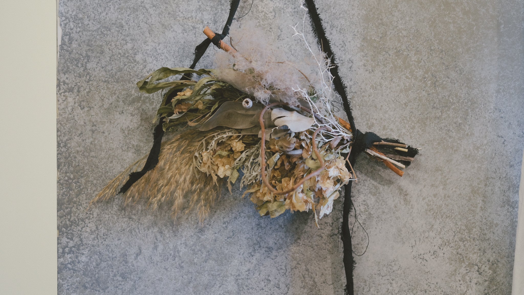 細かいお花を束ねたスワッグアレンジとは少しことなり